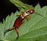 Physical Description: Earwigs have long, thin flat bodies with three segments and six legs. They have pincers are the backs of their bodies, which are longer in males than females. Earwigs also have 2 sets of wings near their upper body.